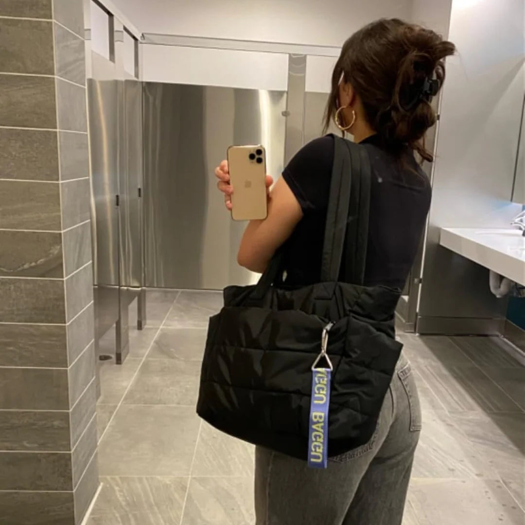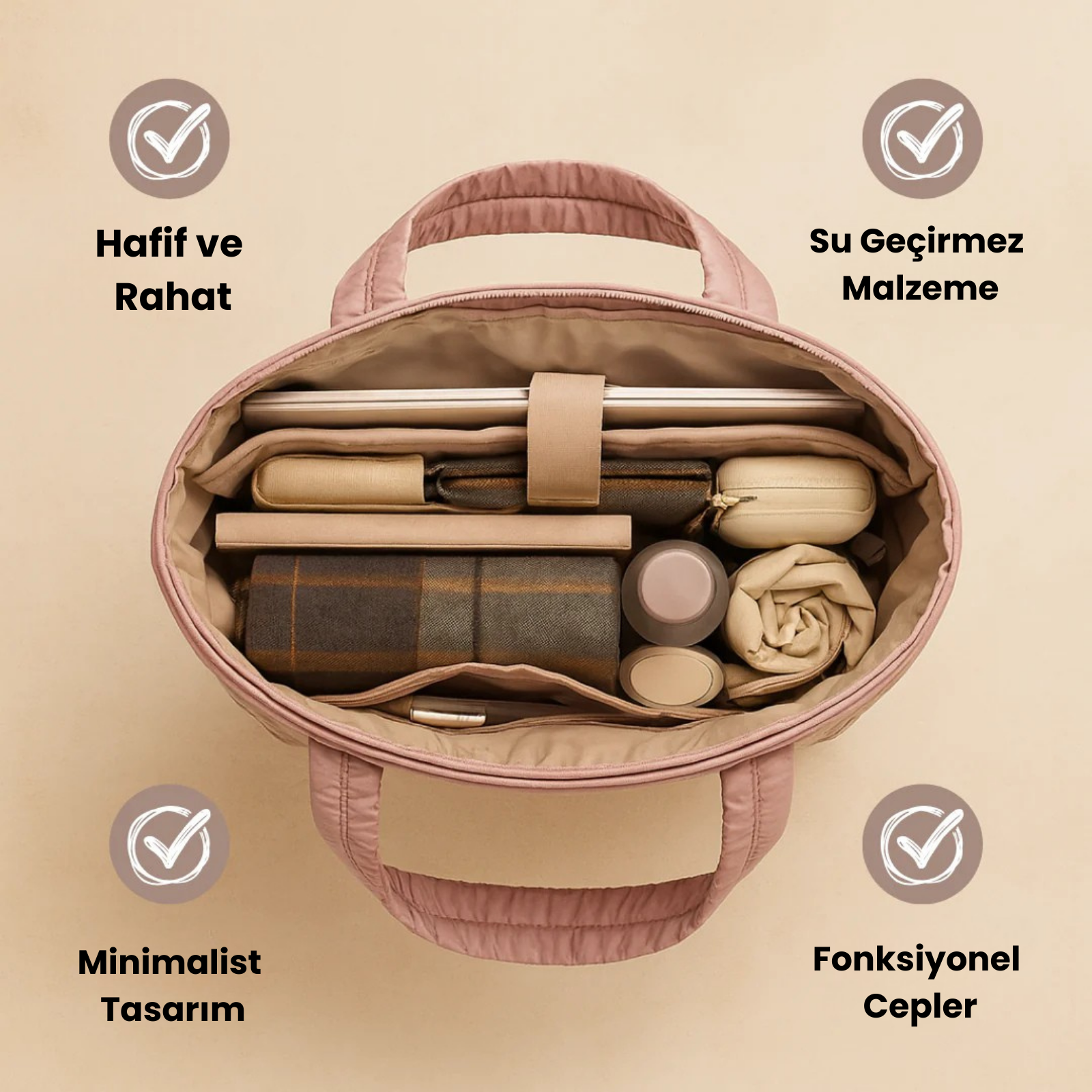 Modern silueti ve ince kapitone dokusuyla sade bir şıklık sunan bu el çantası, her kombine kolayca uyum sağlar. Hafif yapısı ve yumuşak dokusu sayesinde gün boyu rahat bir kullanım verir.