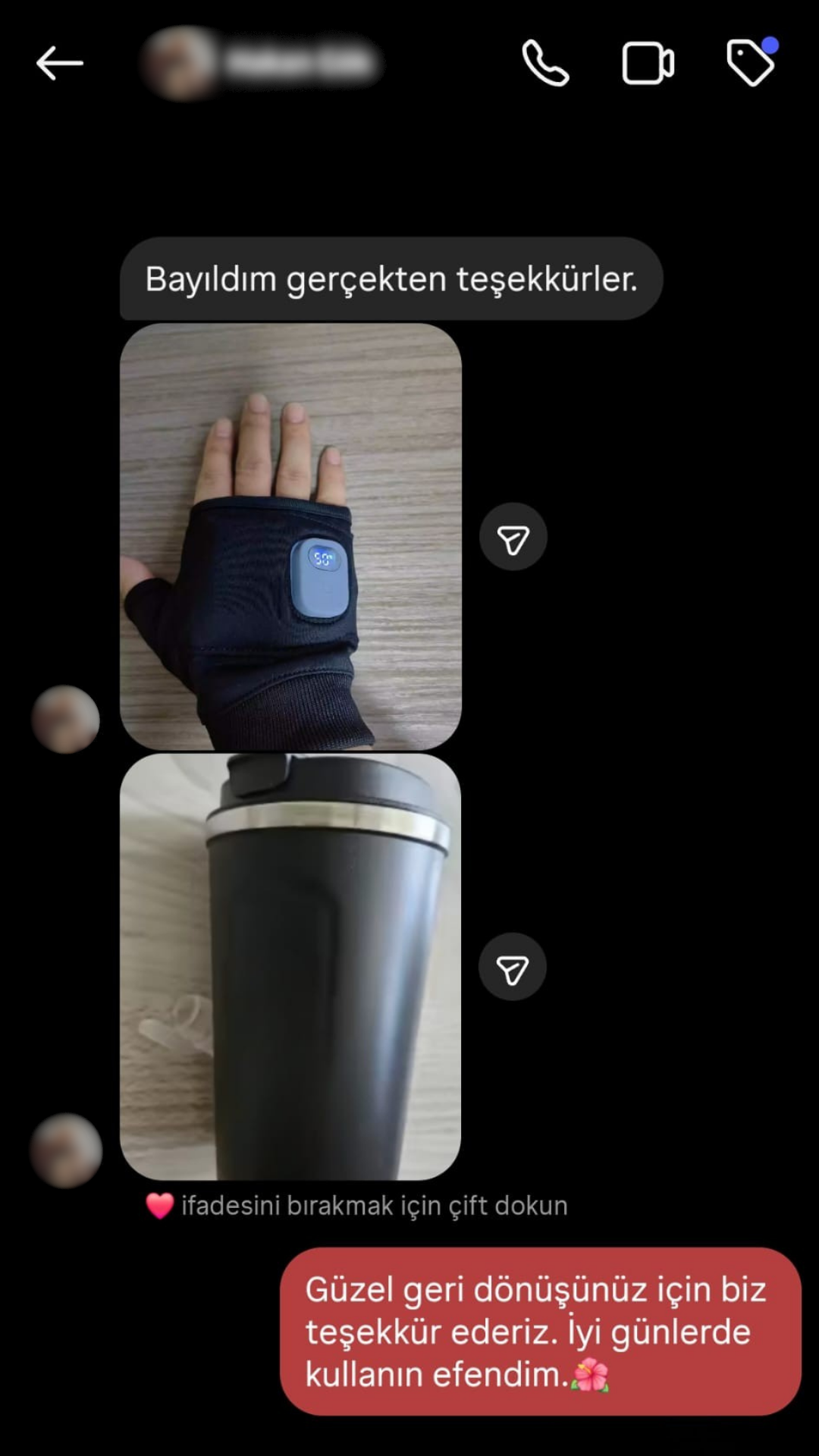 Güvenli kullanım için eldiveni yalnızca şarj işlemi tamamlandıktan sonra takmanız önerilir.